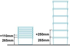 Możliwość wykonania logo metodą sitodruku lub hotstampingu na dłuższym boku pojemnika. Logo jest naniesione w wyższej części ścianki pojemnika. Ma to na celu zapobiegania ścierania się logo podczas wielokrotnego wkładania pojemnika jednego w drugi.