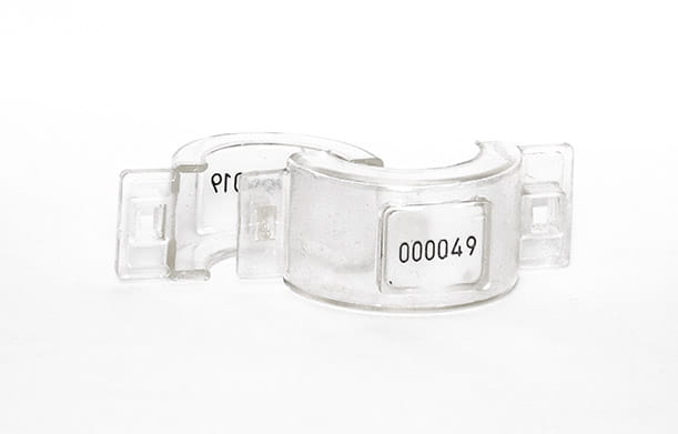 Obejmy są dostosowane do różnych średnic zaworów, są odporne na promienie ultrafioletowe. Nadruk logo i 6 cyfrowej numeracji wykonany laserem.