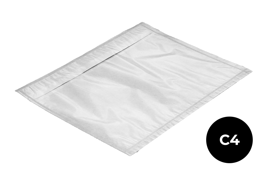 - Wykonane są z przeźroczystej folii LDPE. Tył koperty pokryty jest w całości klejem o wysokiej przylepności, który trwale przytwierdza kopertę do przesyłki.
